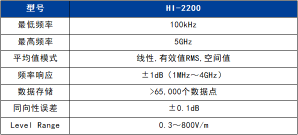 HI-2200配有射頻電場探頭E100,頻率范圍從100kHz到5GHz,大動態測量范圍0.3~800V/m。可選擇的磁場探頭覆蓋頻率范圍300kHz~30MHz 或5MHz~300MHz。所有的探頭可直接與HI-2200的讀出模塊連接,輕松使用。HI-2200以其良好的靈敏度,大動態的測量范圍,方便實用的設計理念,普及應用于各個領域的。